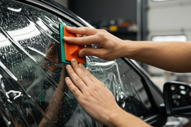 Aplicación profesional de películas polarizadas que reducen el calor, los reflejos y protegen el interior del vehículo.